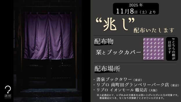 11月8日(土)より、下記書店にていずれかの文庫本をお買い上げいただいた方に「栞」と「ブックカバー」を配布いたします。